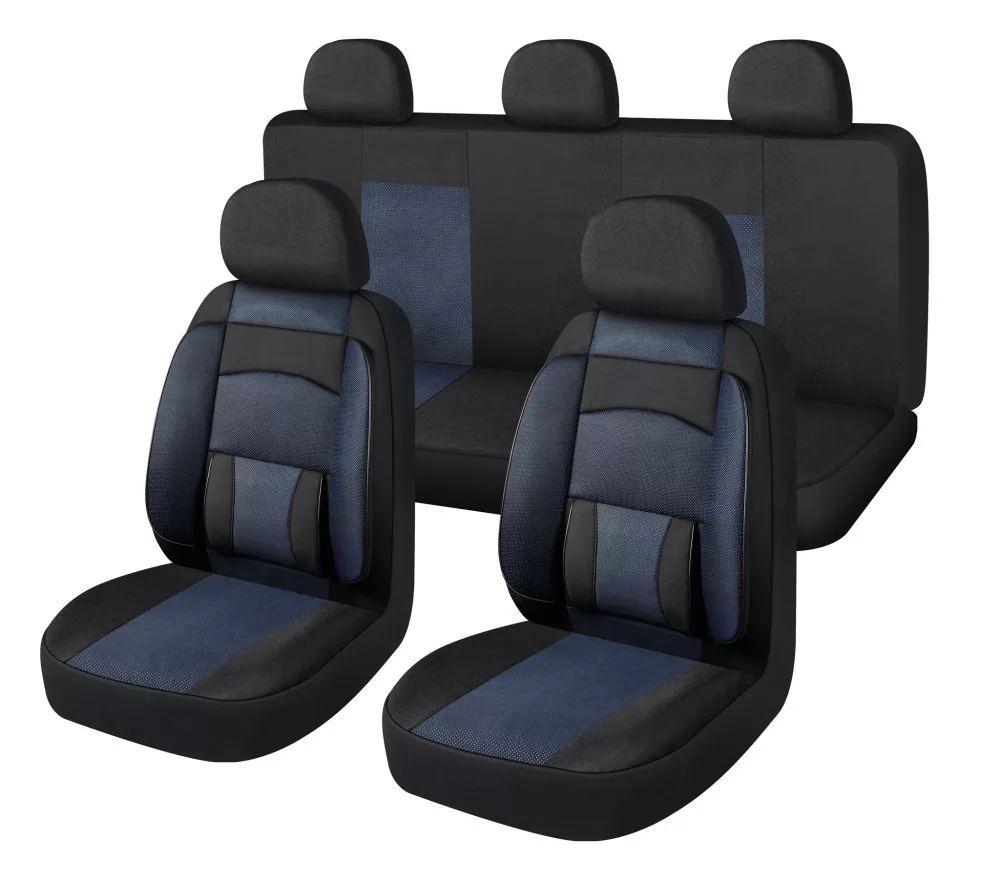 11 részes univerzális légzsákos üléshuzat szett - fekete/kék osztható hátsó ülésekkel