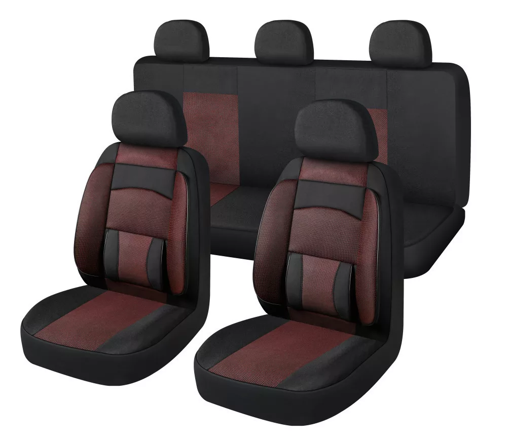 10 részes univerzális üléshuzat szett - légzsákos - fekete/piros osztható hátsó ülésekkel
