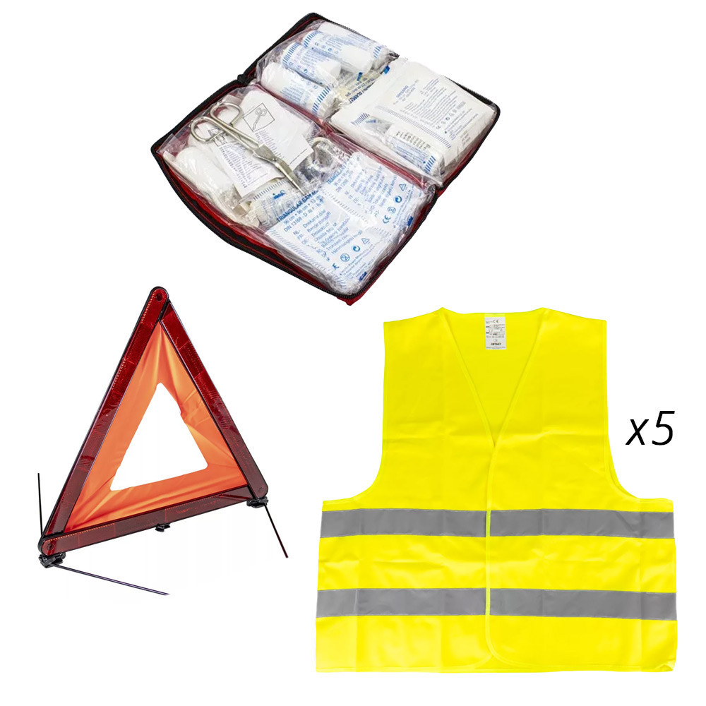 Legyen mindig felkészült vészhelyzetekre ezzel a praktikus 7 darabos biztonsági szettel, amely minden autós számára nélkülözhetetlen tartozék. A csomag minden fontos elemet tartalmaz, ami szükséges lehet baleset, meghibásodás vagy ellenőrzés esetén.