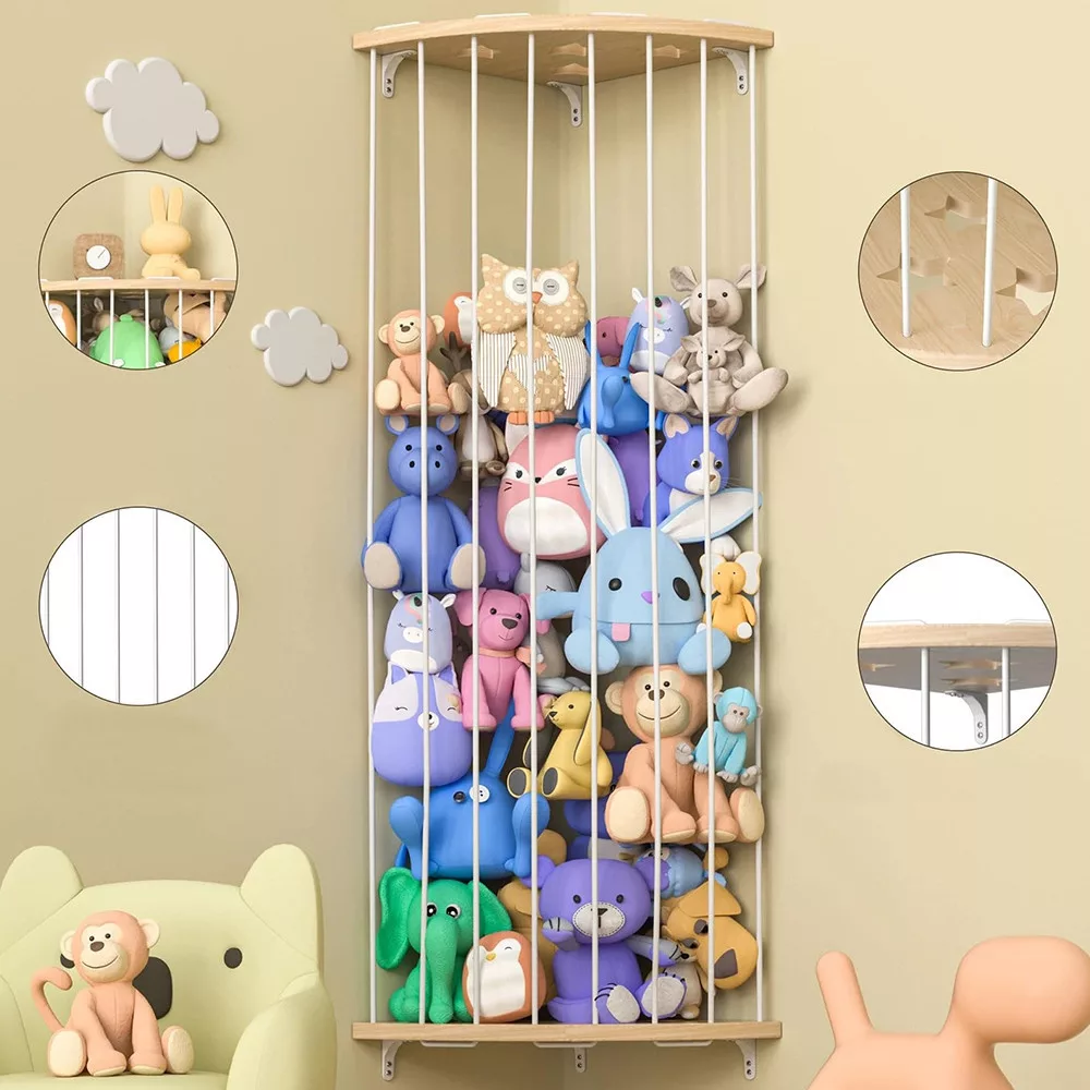 A sarokba szerelhető plüssjátéktartó segít, hogy mindig átlátható és rendezett maradjon a gyerekszoba. A puha játékok végre saját helyet kapnak, így nem foglalják el a padlót és a bútorokat.
