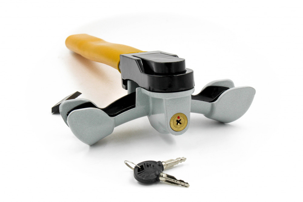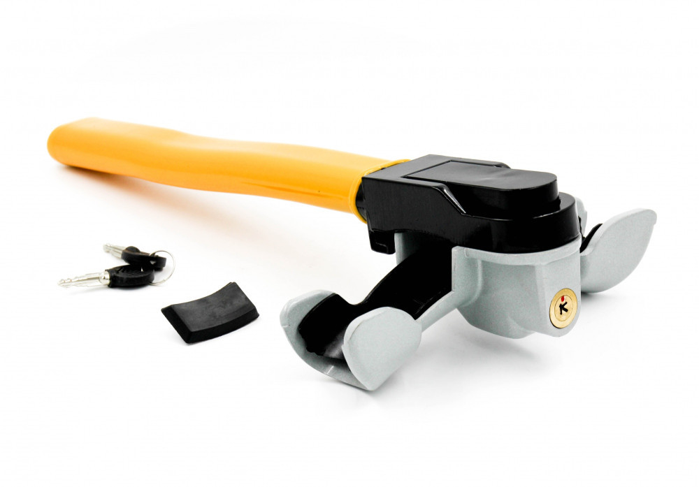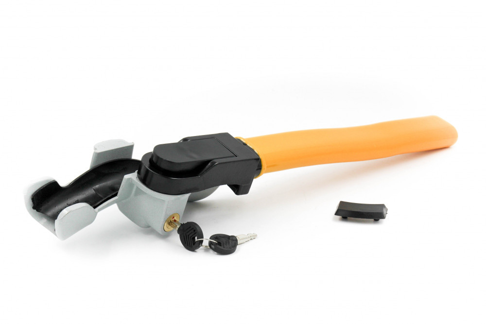 Acél szerkezetű kormányzár, mely jelentős nehezítést biztosít az autótolvajok számára