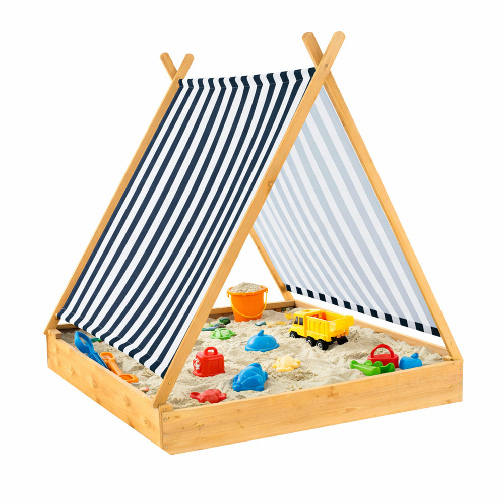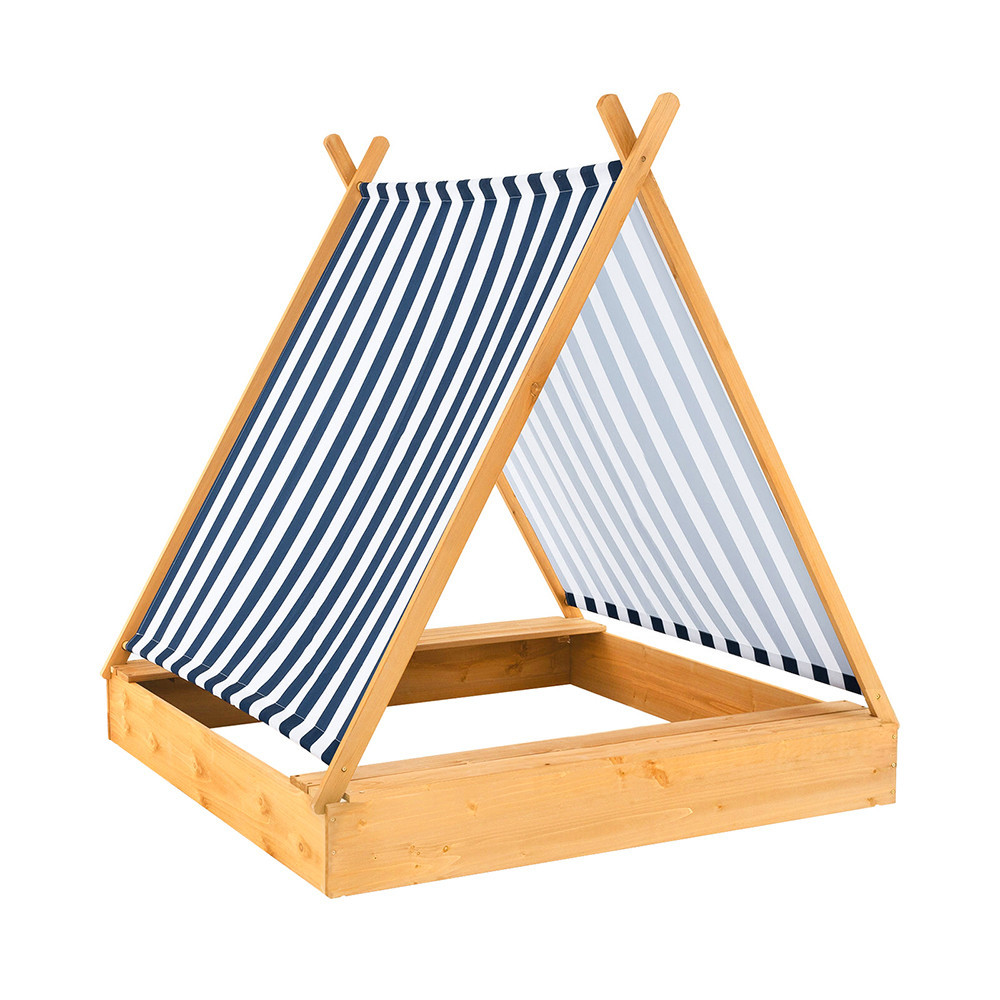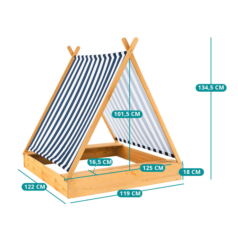 A homokozó stabil fa szerkezetre épül, a felület víz alapú festékkel kezelt. A sátortető segít a komfortos játékban, a beépített padok pedig kényelmes ülőhelyet adnak a homokozás mellé.