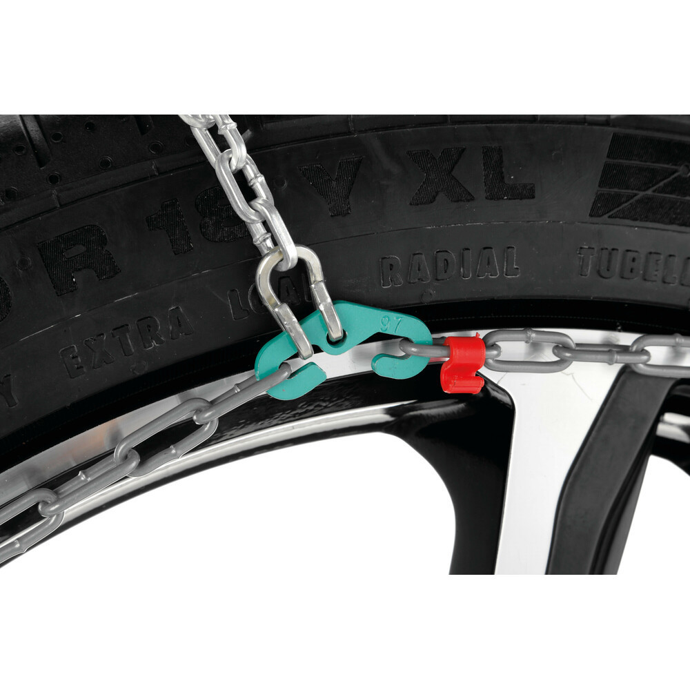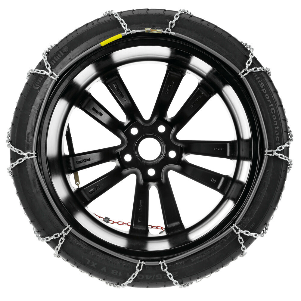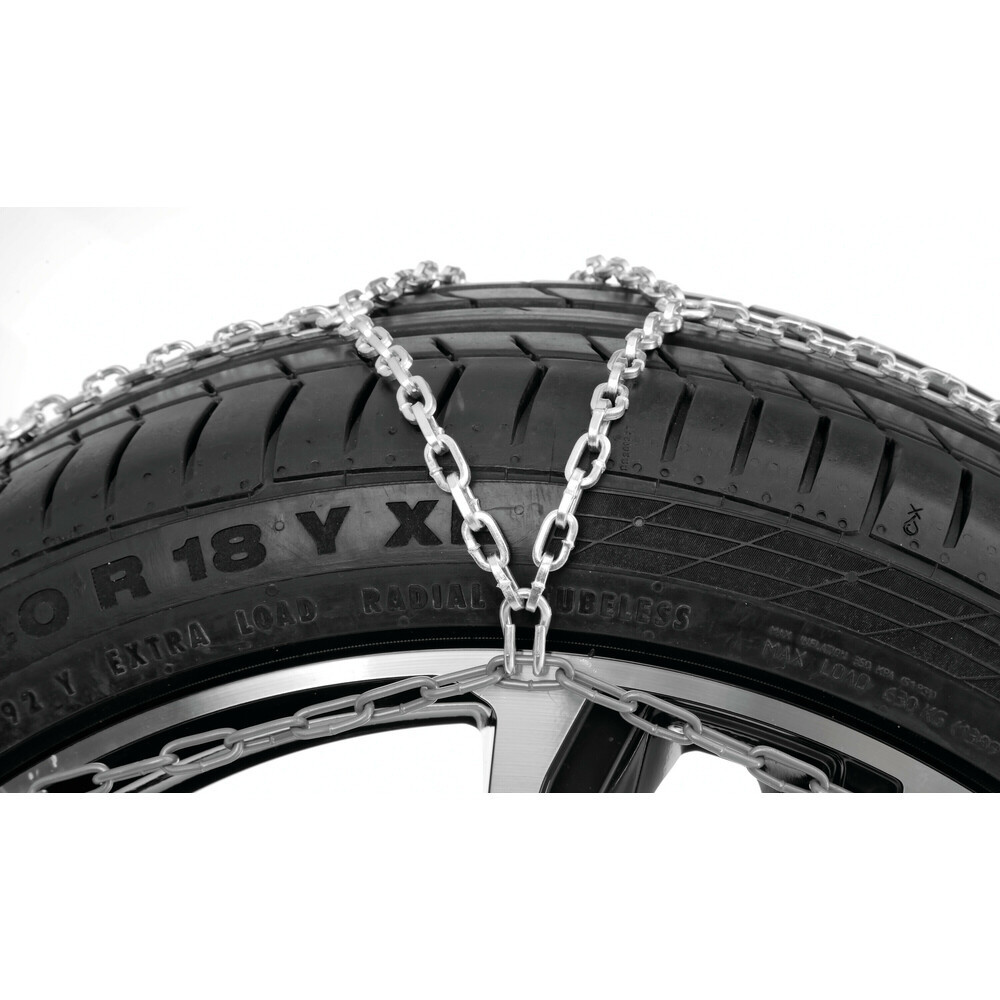 Gyors felszerelésű 9 mm-es hólánc gyémánt mintázattal , kifejezetten olyan autókhoz ahol a kerék és a futómű tartozékai között kicsi a hely.
