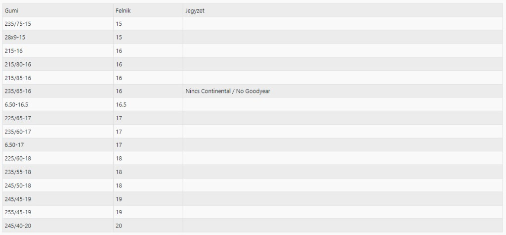 24.5 16" 235/65-16 kivéve Continental Vanco
