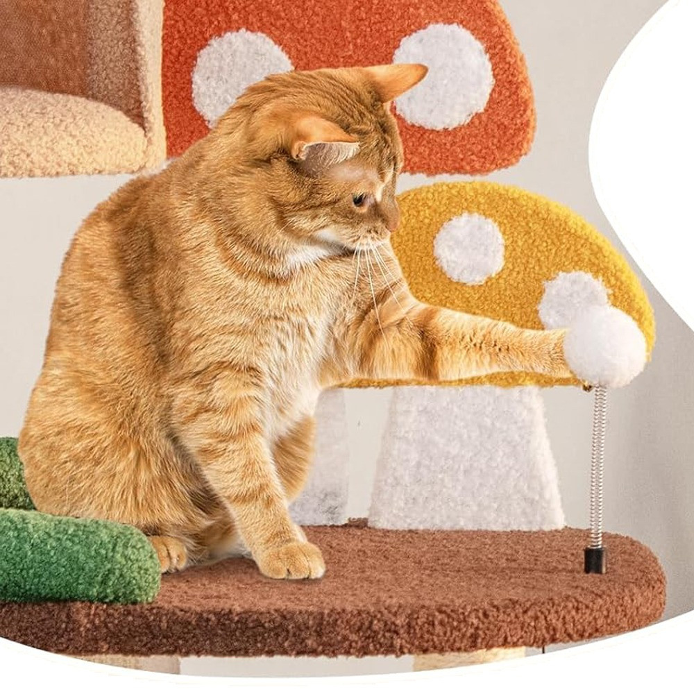A kaparófa tágas, zárt kuckóval rendelkezik, ahol a cica elbújhat vagy pihenhet, és magasított platformmal, ahonnan megfigyelheti a környezetét. A beépített tollas játék pedig hosszú időre leköti a figyelmét és mozgásra ösztönzi.