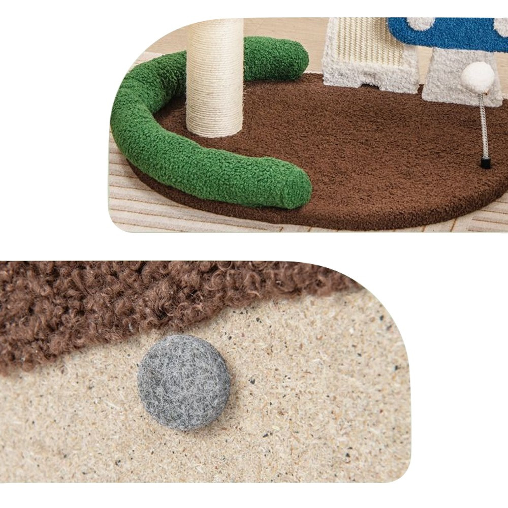 A széles talapzat és a csúszásgátló lábak gondoskodnak arról, hogy a kaparófa használat közben is stabil maradjon. A strapabíró faalap garantálja a hosszú távú használhatóságot még aktív cicák mellett is.