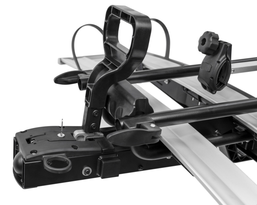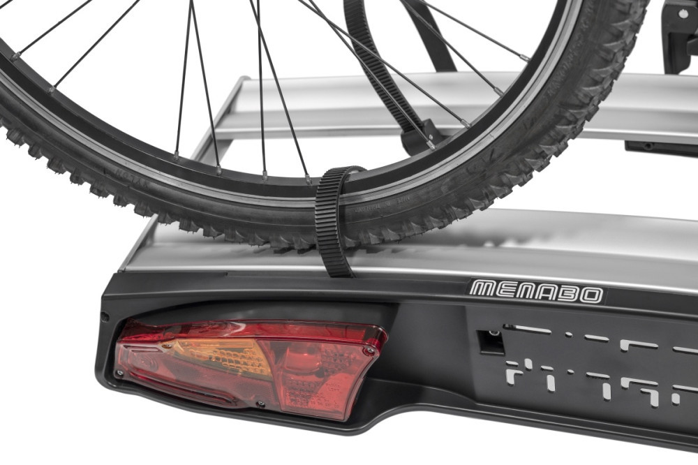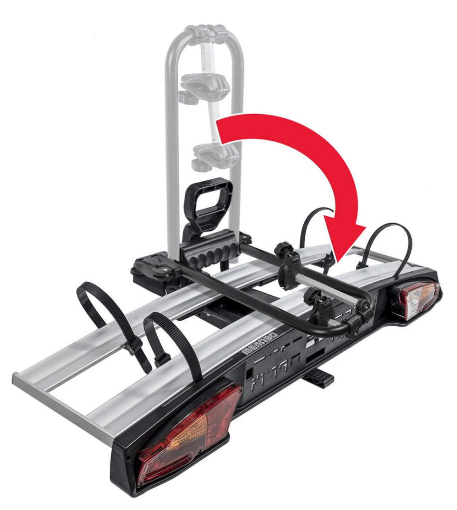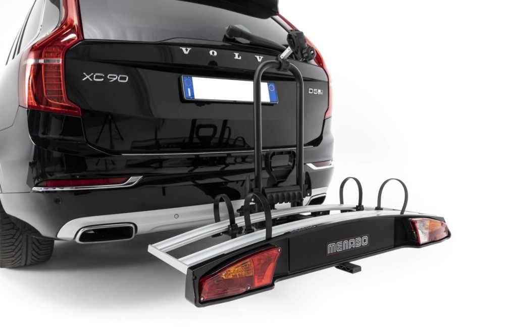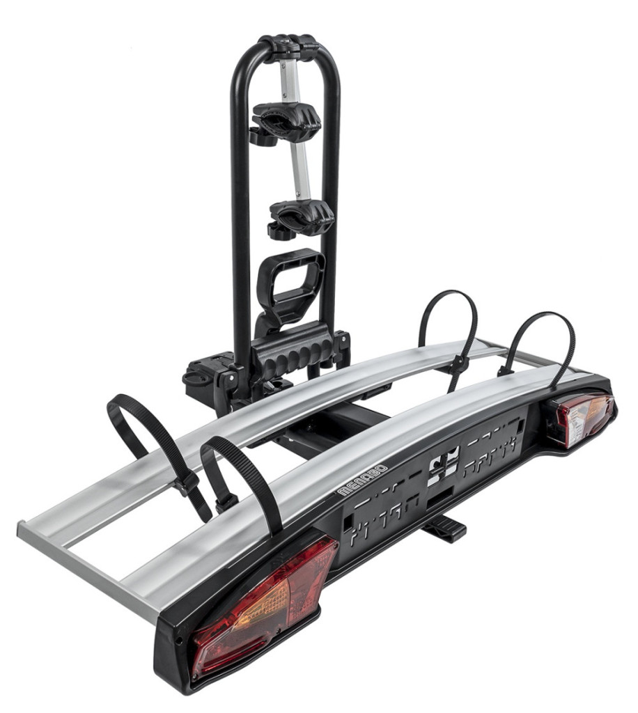 Gyors, karos rögzítés, 94/20/CE szabvány vonóhorogra szerelhető. Acél vázkeret, alumínium kerék sínekkel. Dönthető, a pedállal működő billenőszerkezetnek köszönhetően, így a csomagtartó a felszerelt kerékpárokkal is könnyen és gyorsan hozzáférhető Különleges, az új jármű modellekhez illő lámpákkal. Nagyfokú biztonságot garantáló zárrendszer a kerékpártartó és a kerékpárok számára.