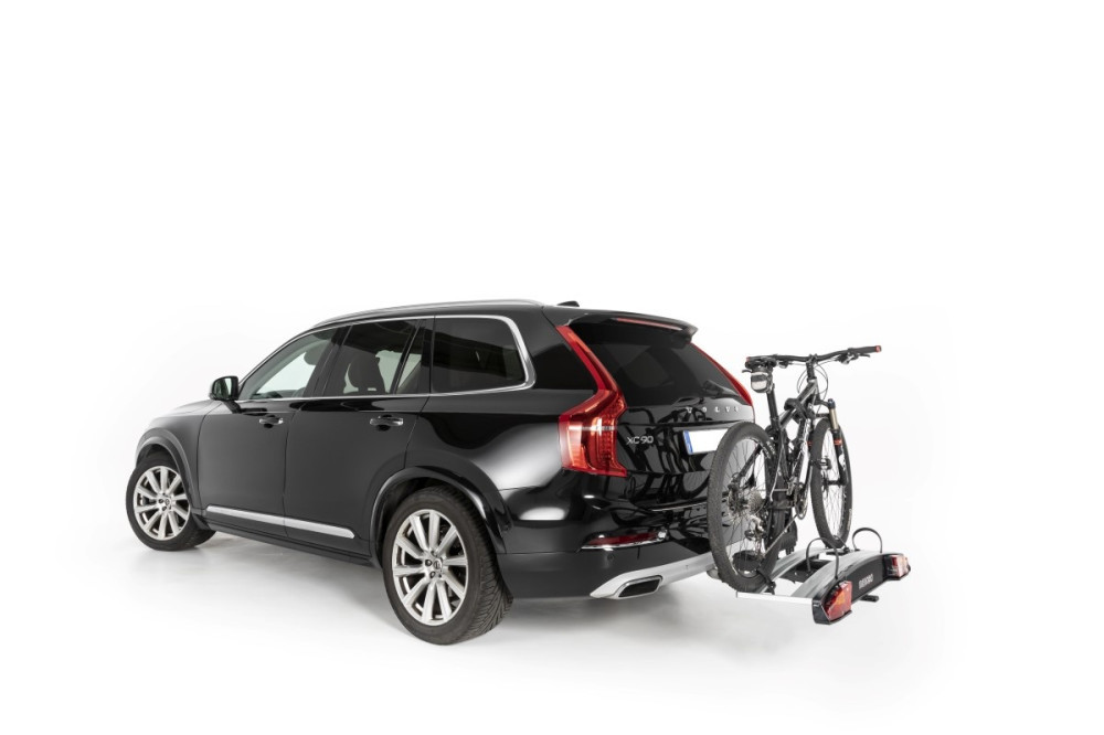 Dönthető vonóhorogra zárható kerékpárszállító 2 db kerékpárhoz, modern dizájn, exkluzív jellemzők.
