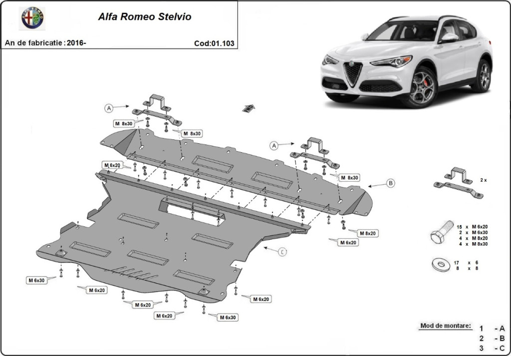 Alfa Romeo Stelvio, 2016 - Acél lökhárító, motor, váltó, hűtővédő lemez