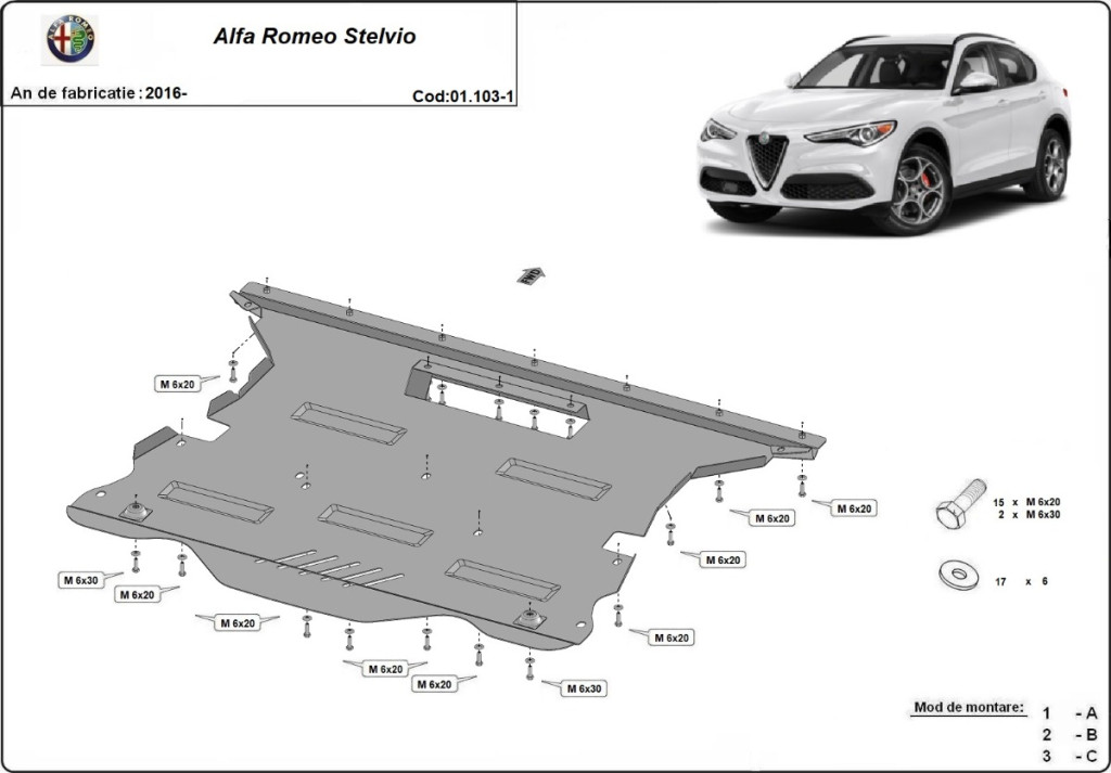 Alfa Romeo Stelvio, 2016 - Acél motor és váltóvédő lemez
