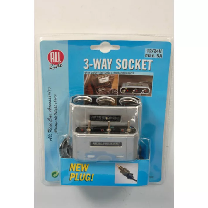 All Ride szivargyújtó elosztó hármas - 12/24V 5A - kapcsolóval