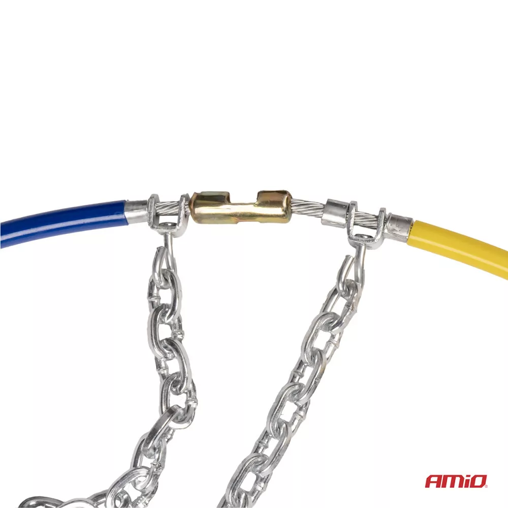Kétfokozatú láncfeszítés - azonnal meg kell húzni a felszerelést követően, és egy kb-10-15 méter megtétele után ismét. Mindkét oldalon használható első és hátsó tengelyen, ABS-sel és ESP-vel felszerelt autókban. A készlet két láncot tartalmaz két hajtókerékhez.