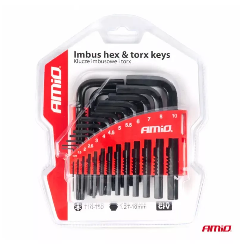 Komplett készlet: 22 különböző méretű kulcs (Imbusz és TORX)