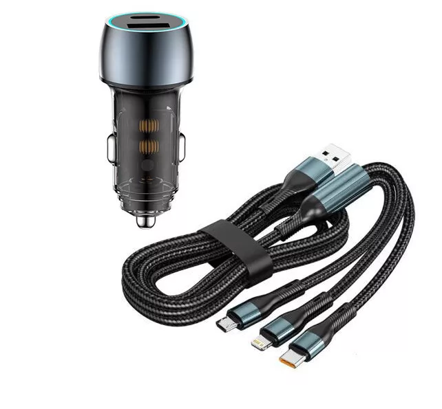 A 3 az 1-ben autós töltő ideális választás minden autó tulajdonosnak, aki különböző eszközöket szeretne egyszerre tölteni vezetés közben. Ez a kábel három különböző töltőfejet tartalmaz, lehetővé téve a Micro USB, USB-C és Lightning csatlakozós eszközök egyidejű töltését, például okostelefonokat vagy táblagépeket.