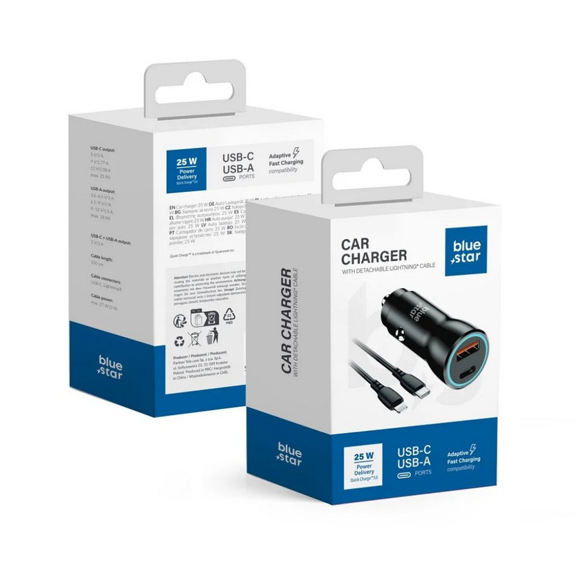 Blue Star autós töltő két porttal: USB-C és USB-A