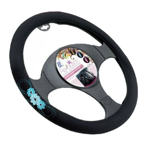 Univerzális Bottari "MY SPRING FLOWER" kormánykerékvédő - fekete, kék virágmintával