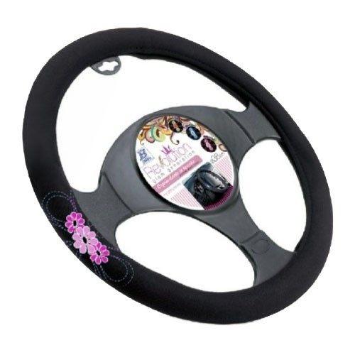 Univerzális Bottari "MY SPRING FLOWER" kormánykerékvédő - fekete, rózsaszín virágmintával