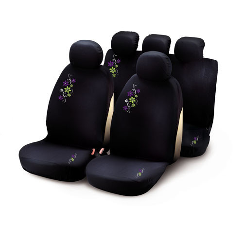Bottari "MY STAR" 9 részes üléshuzat garnitúra - fekete színű, lila-zöld virág mintás szett