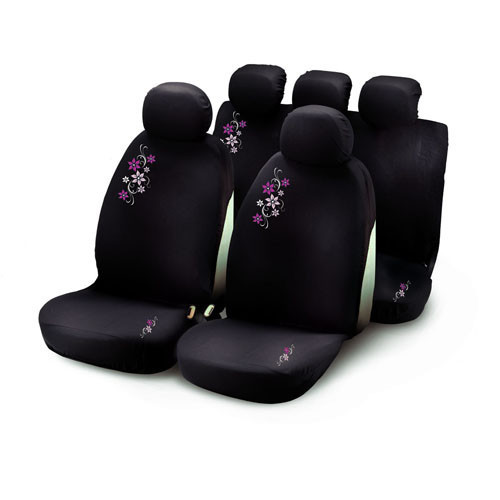 Bottari "MY STAR" 9 részes üléshuzat garnitúra - fekete színű, rózsaszín virág mintás szett
