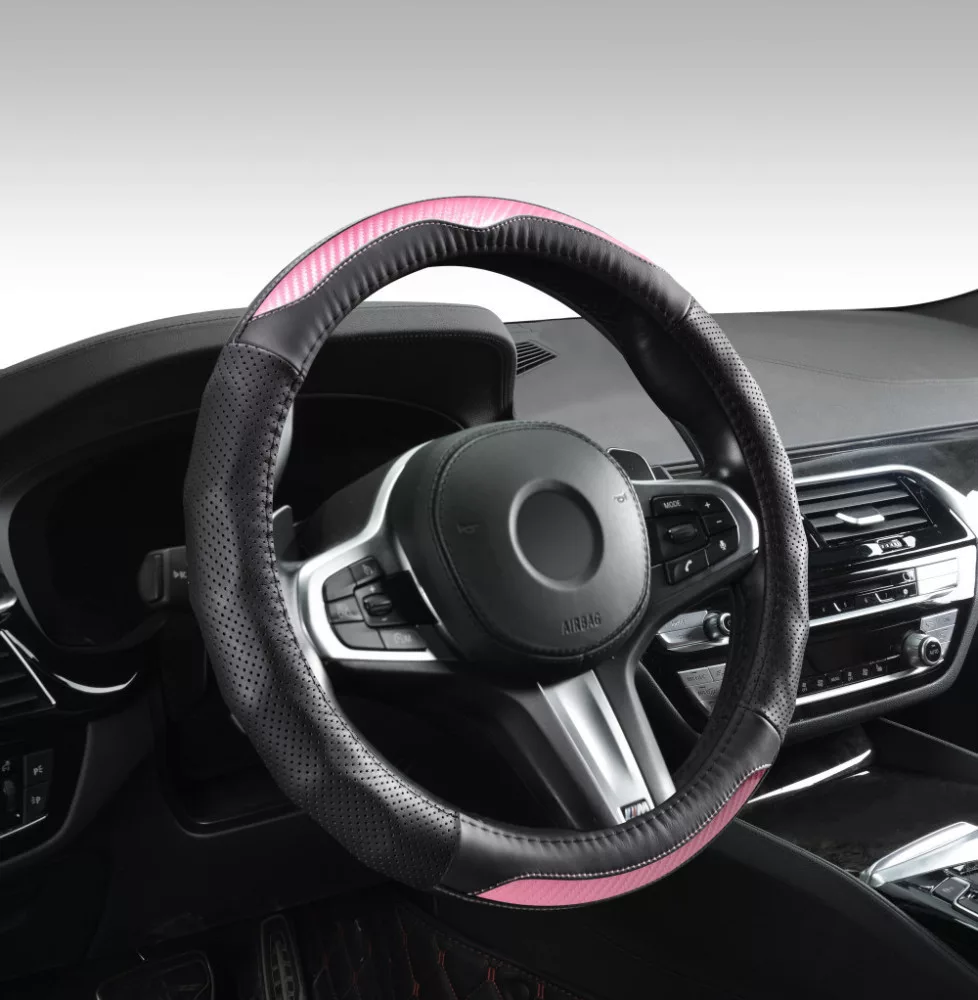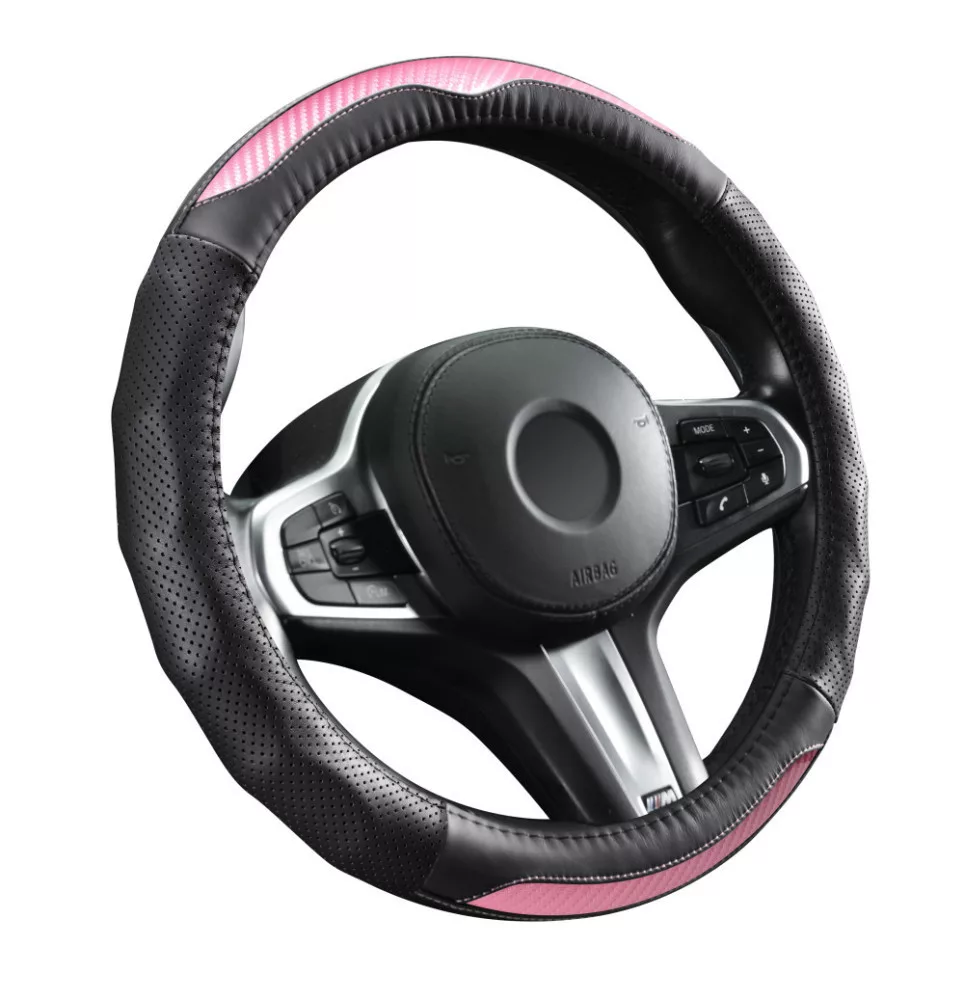 Valódi bőr kormányvédő 38cm fekete/pink