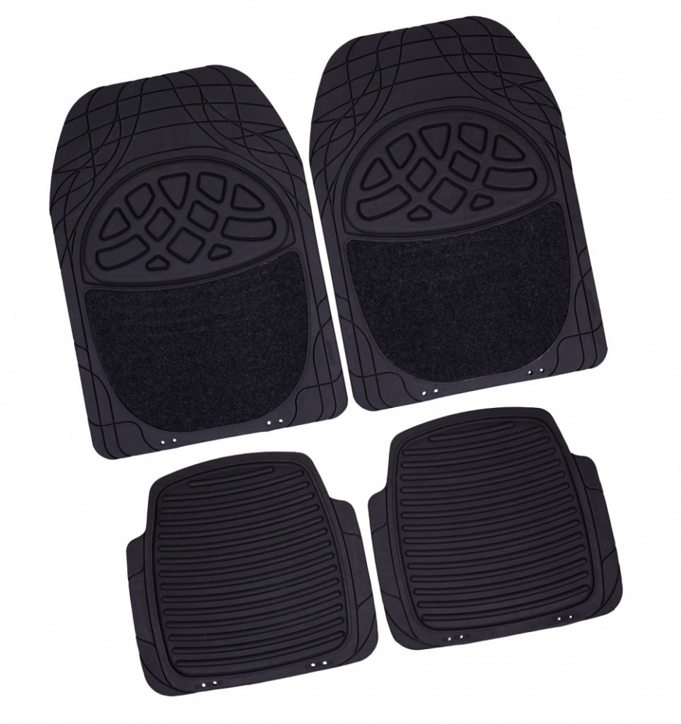 Műanyagszövet-gumi anyagú, vágható autószőnyeg garnitúra - 4 részes, fekete színű szett