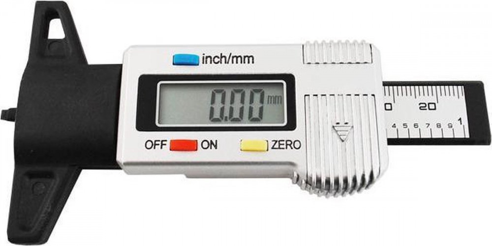 Digitális futófelület-mélységmérő a gumiabroncs profilmélységének mérésére.