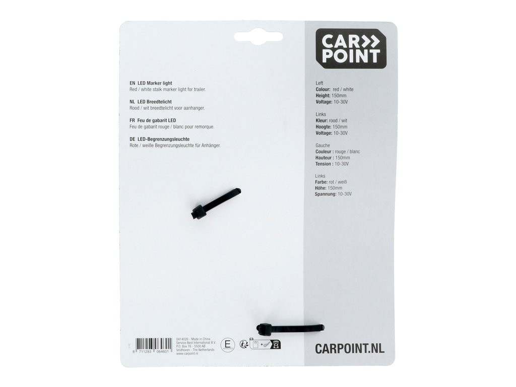 Carpoint piros/fehér LED-es utánfutó helyzetjelző lámpa, a pótkocsi bal oldalára szerelhető.