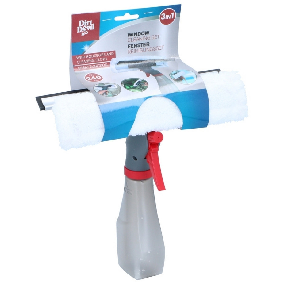 Az ablakok csíkmentes tisztítása még soha nem volt ilyen egyszerű, mint a Dirt Devil 3 az 1-ben ablaklehúzóval, amely beépített permetező funkcióval rendelkezik. Ez a praktikus eszköz – ablaktörlő, lehúzó és permetező egyben – gyorsan és hatékonyan távolítja el az ablakokról a port, a szennyeződéseket és a makacs foltokat.