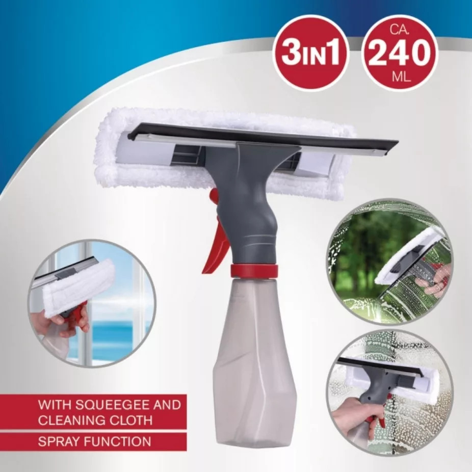 A kivehető tartály akár 240 ml víz és tisztítószer keverékét is képes befogadni. A permetező segítségével először könnyedén benedvesítheti az üveg felületét, majd a tisztítókendővel alaposan áttörölheti. Ezután a gumilehúzóval egyszerűen eltávolíthatja a felesleges vizet, így az ablak ragyogóan tiszta és csíkmentes marad.