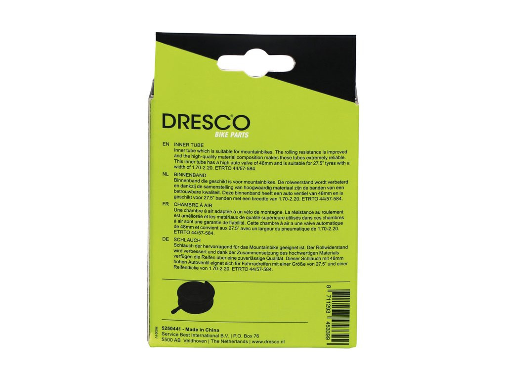 Alkalmas 27,5 x 1,7-2,20 vagy ETRTO 44/57-584 méretű gumiabroncsokhoz, és 48 mm magas Auto/Schrader szeleppel van felszerelve.