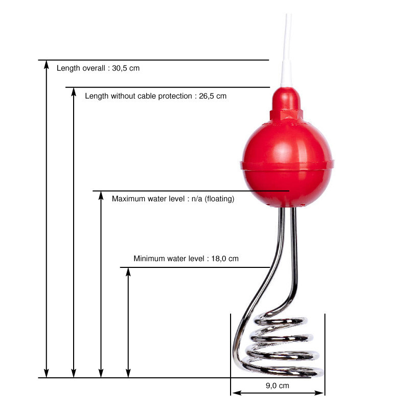 - Úszós kialakítás: Az önszintező úszós dizájn biztosítja, hogy a forraló mindig a víz felszínén maradjon, ezáltal egyenletes melegítést biztosítva.