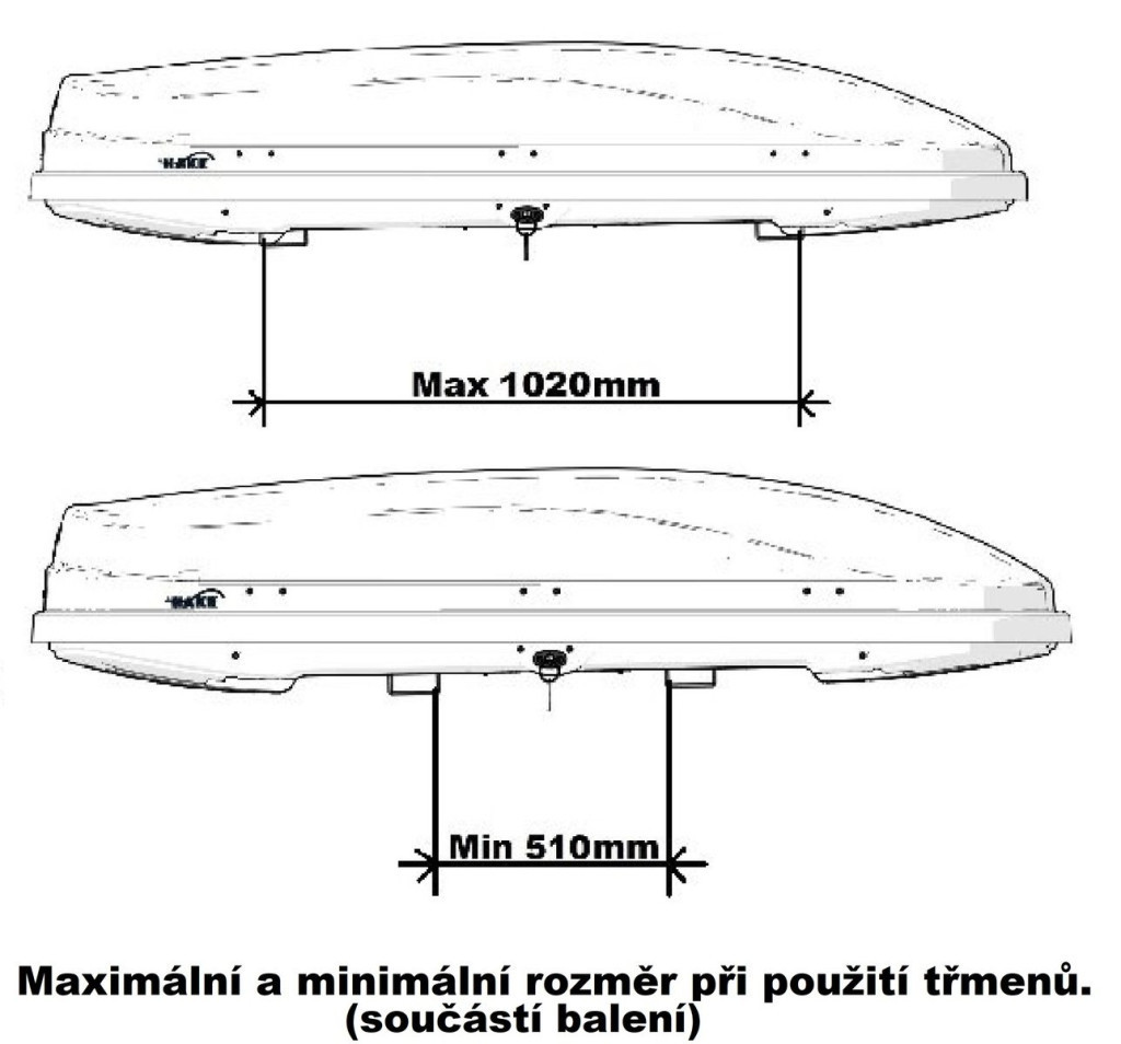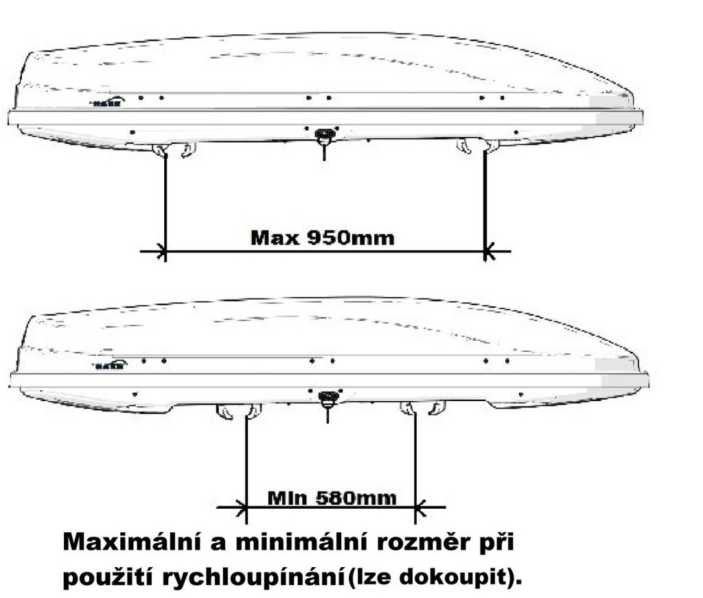 A doboz 8,2 cm széles U-szorítókkal rögzíthető a rúdhoz - maximális külső szorítótávolság 1020 mm, minimális belső szorítótávolság 510 mm