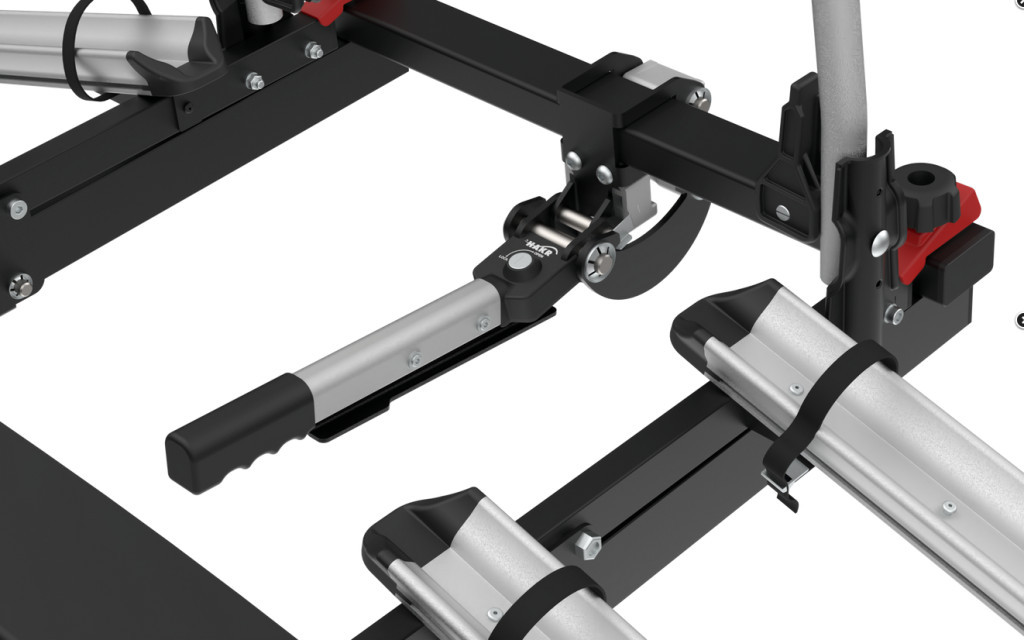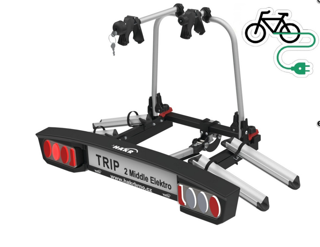A HAKR Trip 2 Middle Elektro kerékpártartó vonóhorogra egyszerűen összecsukható a vázcső megnyomásával, ami biztosítja, hogy kényelmesen elhelyezhető legyen az autó csomagtartójában. A kerékpártartó lezárható, úgyhogy nem kell aggódnod, hogy ellopják a kerékpárokat a parkoló autóról.