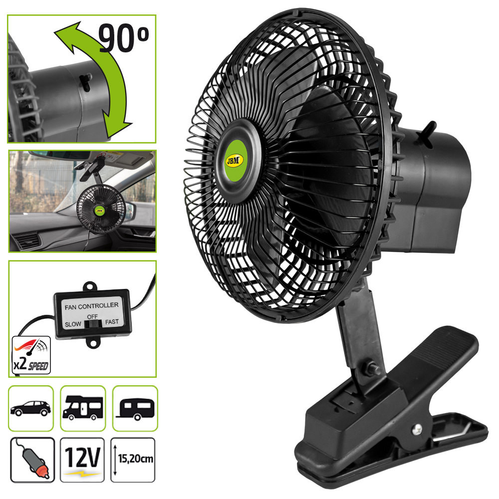 JBM 12V-os autós ventilátor - csipeszes - 12V