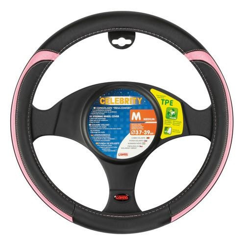 Lampa műbőr kormánykerék védő - fekete-rózsaszín