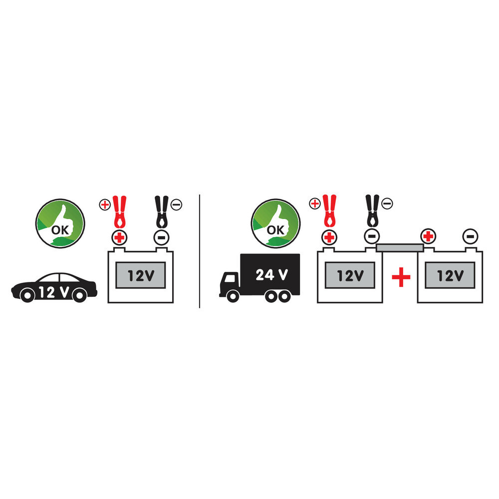 Csatlakozás az akkumulátorhoz kábelkapcsokon keresztül.