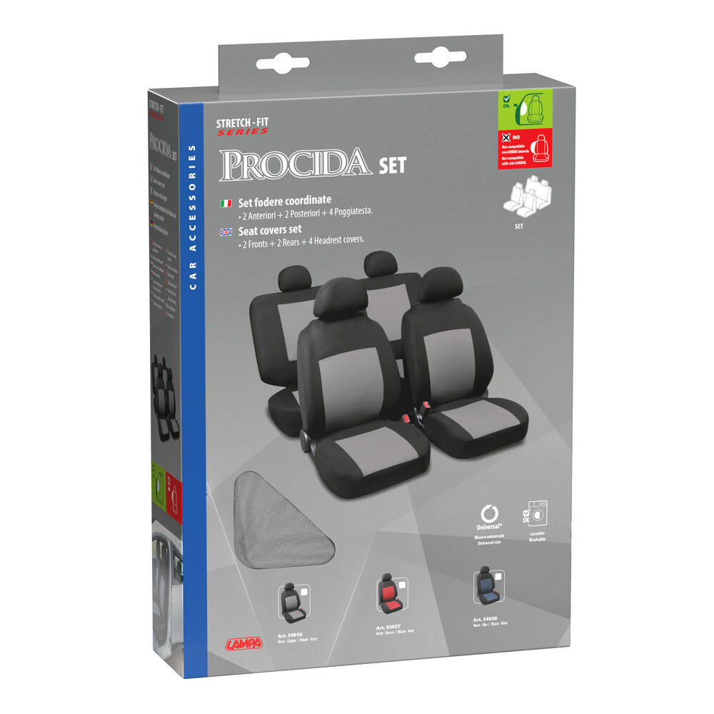 LAMPA Procida - 8 részes üléshuzat szett, univerzális, fekete-szürke színű