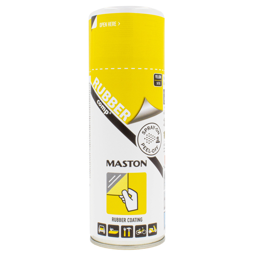 A Maston RUBBERcomp® egy szórható több-célú specális levegőn száradó gumi bevonat. Védelmet nyújt a nedvesség, savak, dörzsölés és korrozió ellen, valamint egy jól tapadó kényelmes fogást és tapintást kínál. Flexibilis marad extrém időjárási körülmények között is. Extenzív tesztelésen ment keresztül -30°C és +90°C hőmérséklet között. Könnyen lehúzható. Nagyjából 4 réteg szükséges a megfelelő fólia / film vastagsághoz.