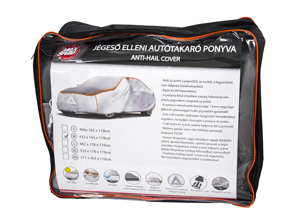 A ponyva felső részében vastag habanyag van, amely jégesőben megvédi az autót.