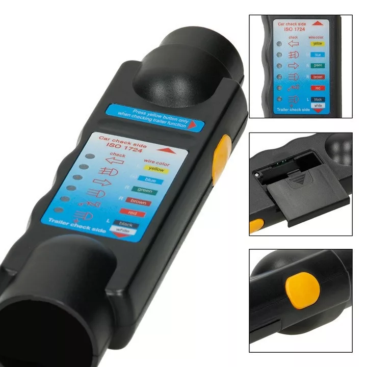 Teszter lámpákhoz és kábelekhez pótkocsikhoz és egyéb vontatójárművekhez (DIN ISO 1724). Ez a hasznos tesztkészülék biztosítja a leggyorsabb és legegyszerűbb kábelvezeték-hibák keresését pótkocsikon és vontatójárműveken. A hibás kábelszíneket a készülék LED-ekkel jelzi. Minden 7 tűs aljzat és dugó tesztelhető.