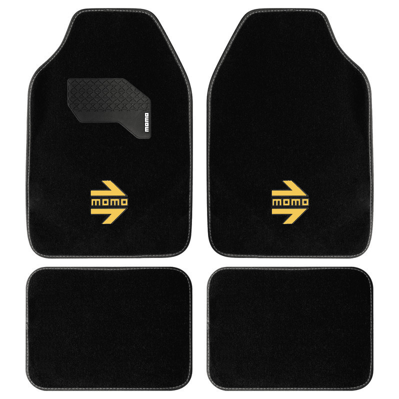 A MOMO univerzális autós padlószőnyegek kiváló minőségű szőnyeganyagból készülnek, amely luxus hangulatot kölcsönöz járműve belsejének. A fekete szőnyeg tartós és könnyen tisztán tartható.
