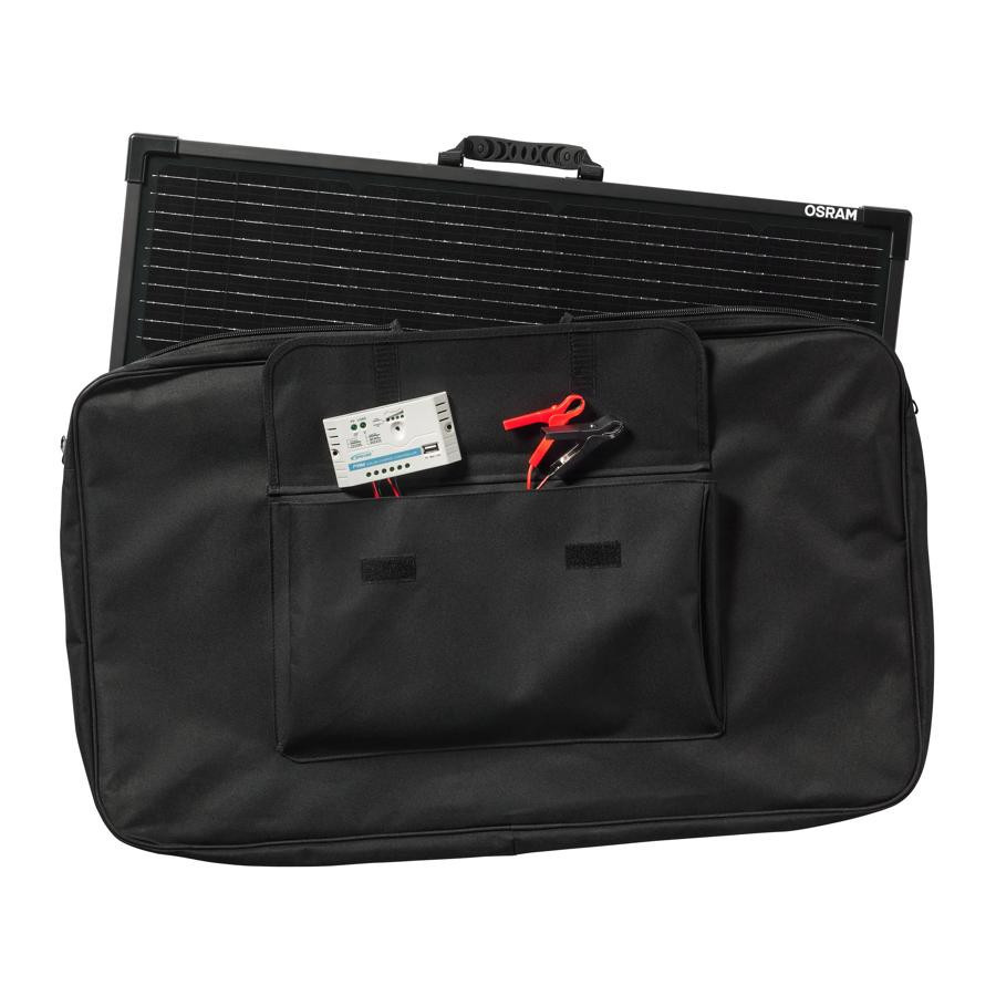 A BATTERYcharge SOLAR 100W mobilitását és használhatóságát a kompakt, összecsukható kialakítás segíti. A panel kinyitva is mindössze 530 x 557 mm méretű, és könnyedén elfér egy jármű tárolórekeszében. A csomaghoz tartozik egy 4,92 méter hosszú kábel, amely lehetővé teszi a rugalmas elhelyezést a jármű árnyékos részén kívülre, valamint egy 1 méteres akkumulátorcsatlakozó klipsz, amely gyors és biztonságos kapcsolódást tesz lehetővé bármilyen ólomsavas vagy AGM típusú akkumulátorhoz.