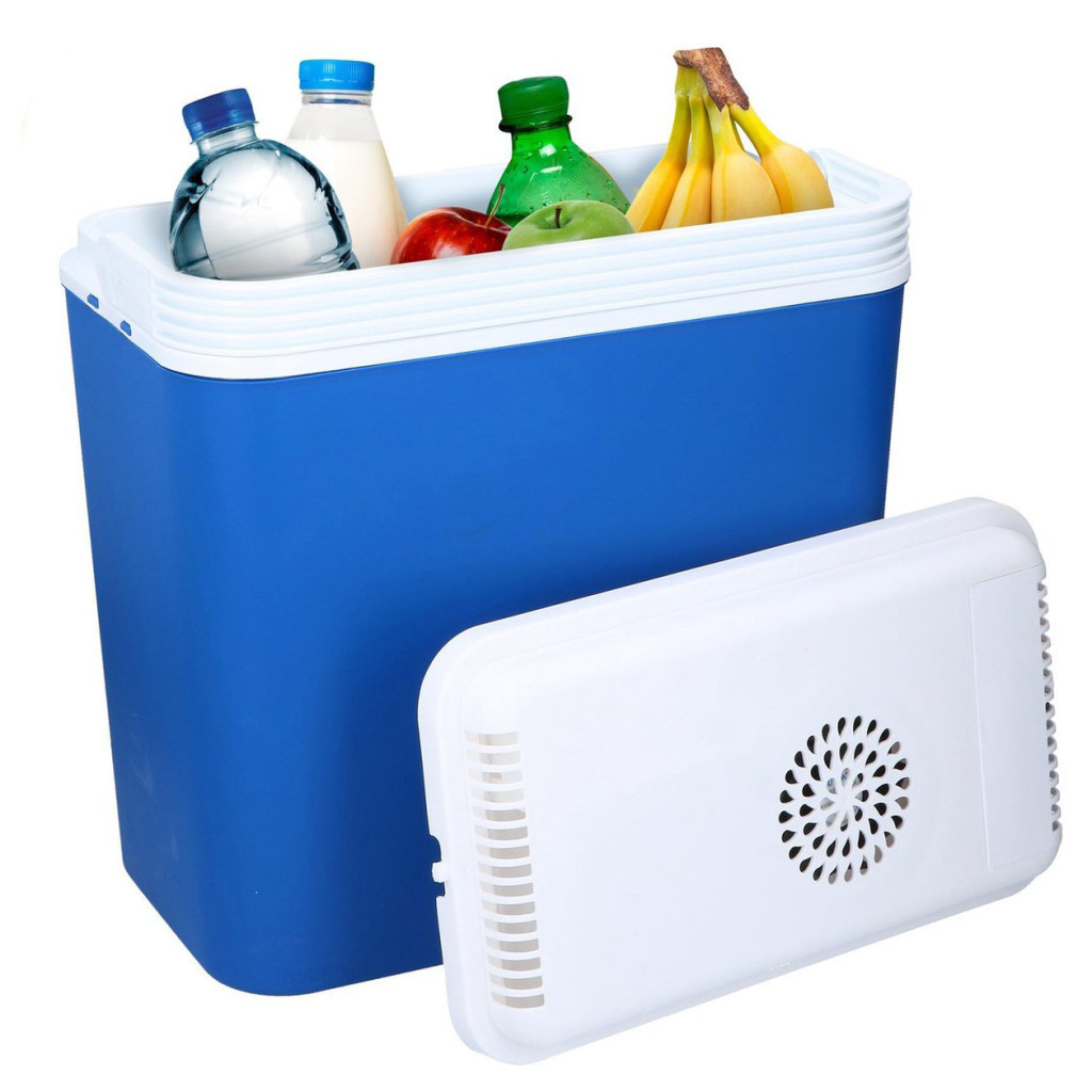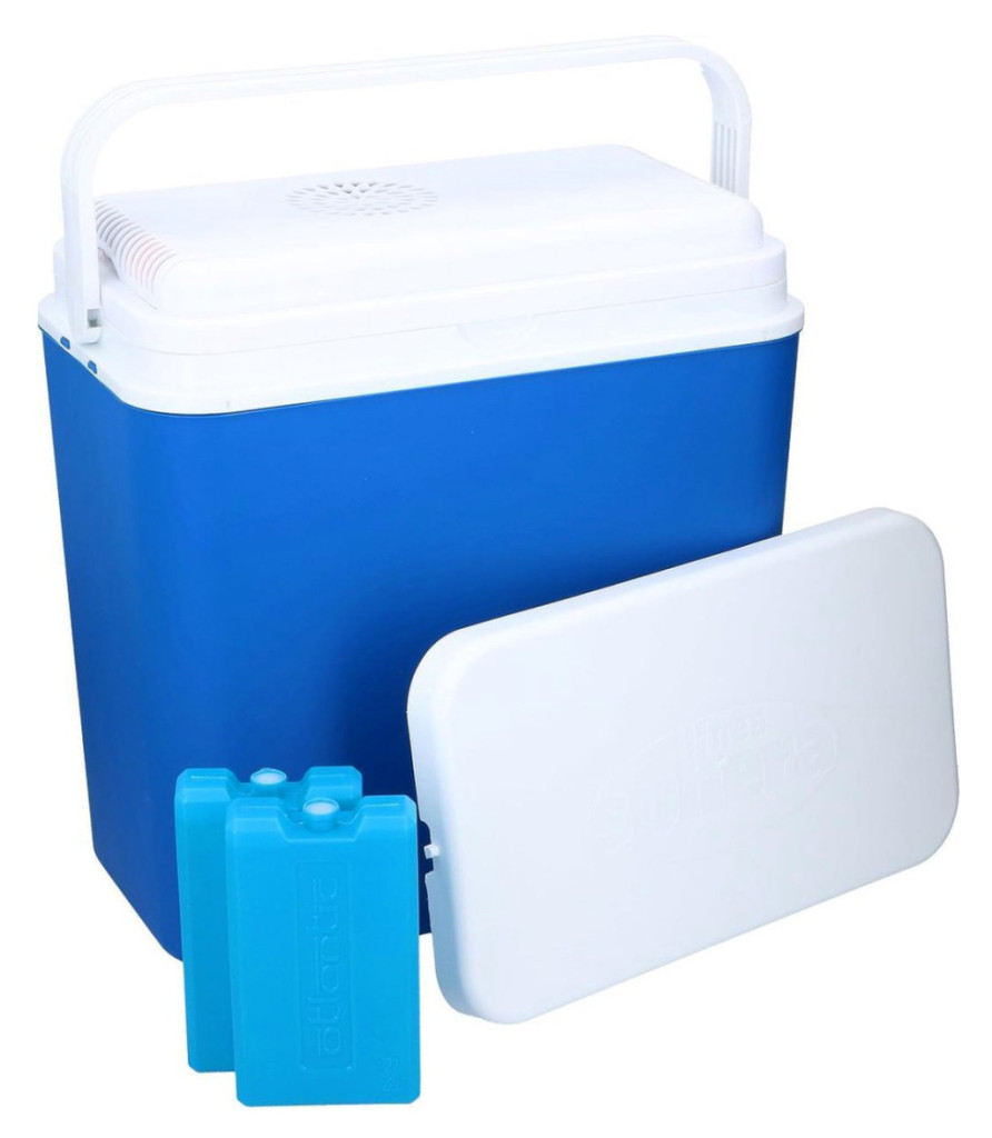 12 V-os csatlakozóval szivargyújtórol működik vagy használhatod normál módban is hűtőakkuval.