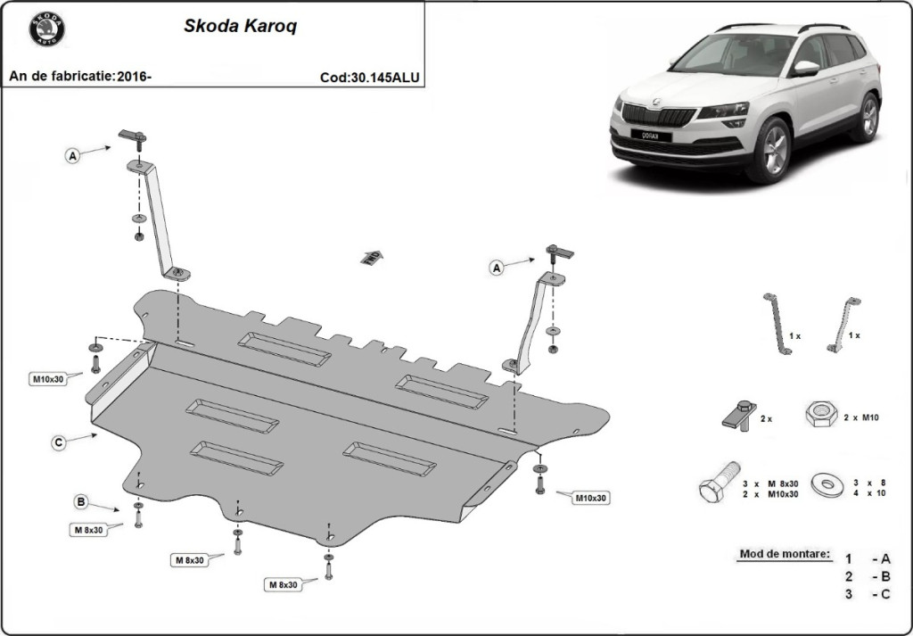 Skoda Karoq, 2016- Alumínium Motorvédő lemez