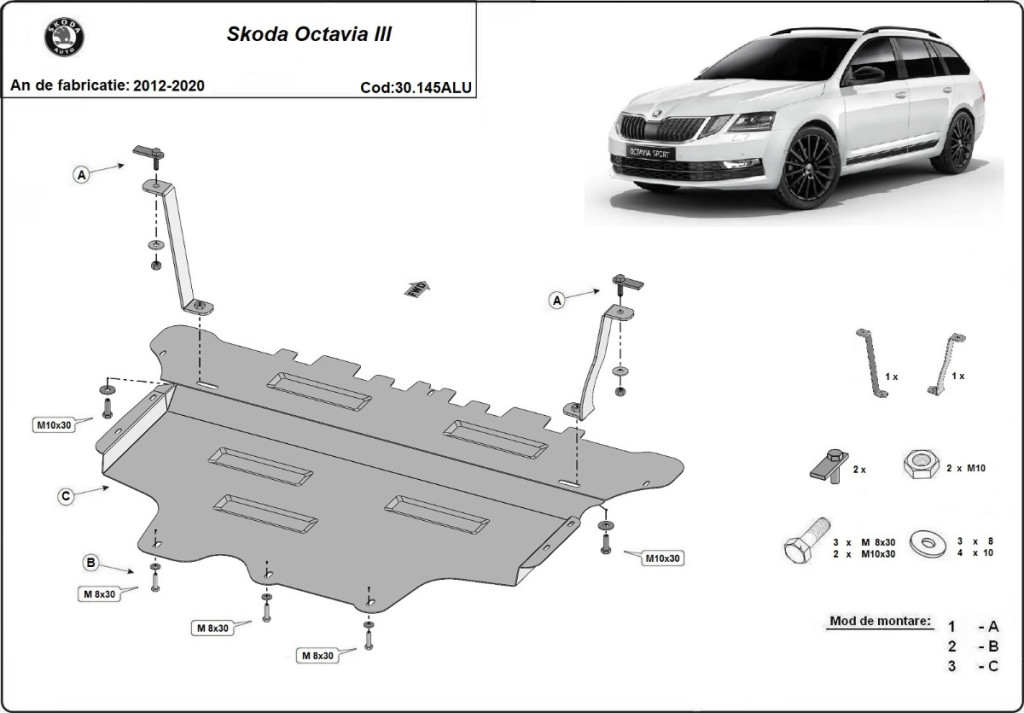 Skoda Octavia, 2012-2020 - Alumínium Motorvédő lemez