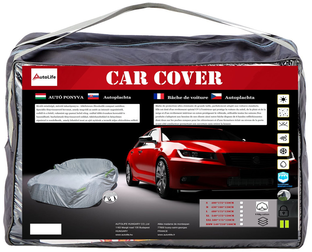 Az alsó réteg vízálló és kopásálló, hatékonyan megvédi az autót a nedvességtől és a környezeti hatásoktól. A középső réteg extra párnázatot biztosít a további védelem érdekében, elkerülve a sérüléseket és karcolásokat. A felső réteg UV-védelmet nyújt, megelőzve a napfény okozta károsodásokat és az elszíneződést.
