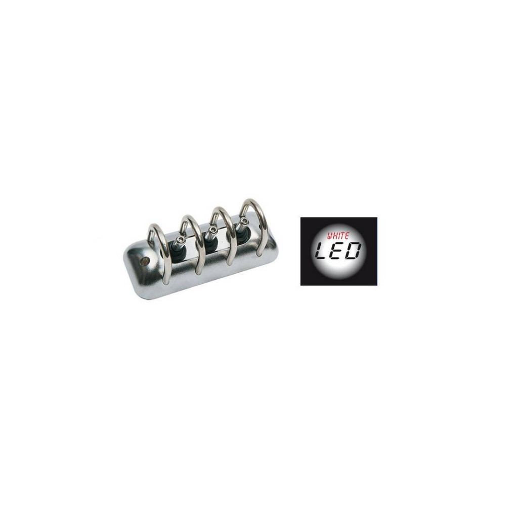 Ez a hárompólusú kapcsolóblokk három különálló, LED-es visszajelzővel ellátott kézi kapcsolót tartalmaz, biztonsági fedéllel ellátva. A krómozott kivitel modern és sportos megjelenést biztosít, miközben lehetővé teszi különböző elektromos rendszerek gyors és biztonságos vezérlését.