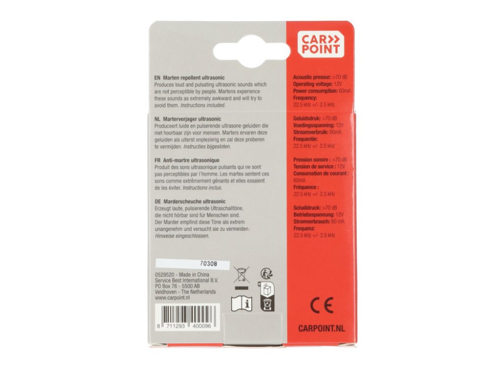 Ultrasonic - nyestriasztó, 12V-os, 70dB