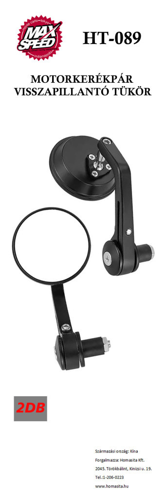 MaxSpeed motoros tükör - kormányvégbe - fekete - párban