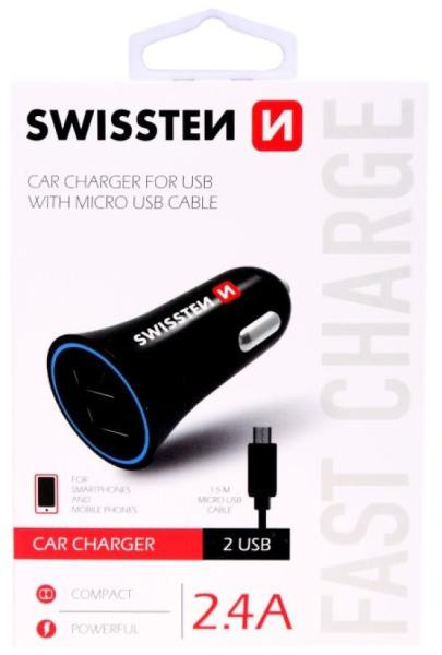 SWISSTEN szivargyújtós töltő - 2xUSB - 2,4A